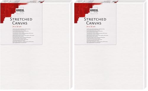 KREUL 592430 - Stretched Canvas, châssis 24 x 30 cm qualité débutant, pour peinture acrylique et gouache, toile en coton avec 4 couches de fond (Lot de 2)