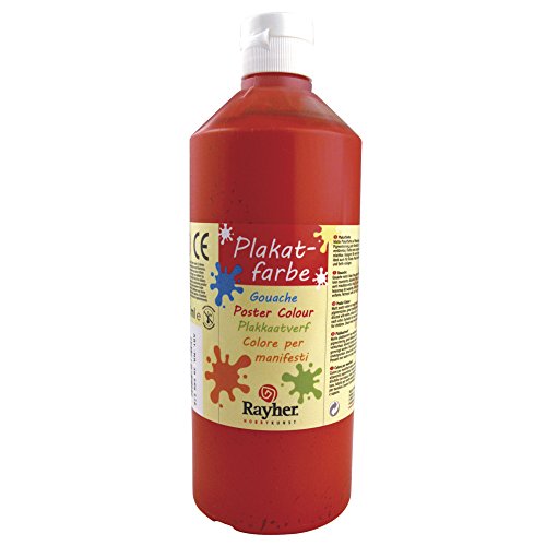 Rayher Peinture Gouache, rouge, 1 bouteille, 500ml, arts créatifs, papier, toile, adultes, enfants-38566287