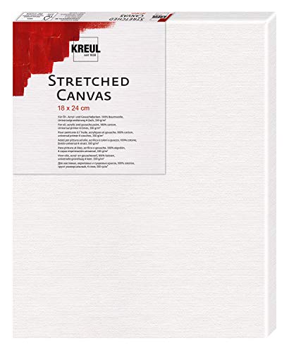 KREUL 591824 - Stretched Canvas, châssis 18 x 24 cm qualité débutant, pour peinture acrylique et gouache, toile en coton avec 4 couches de fond