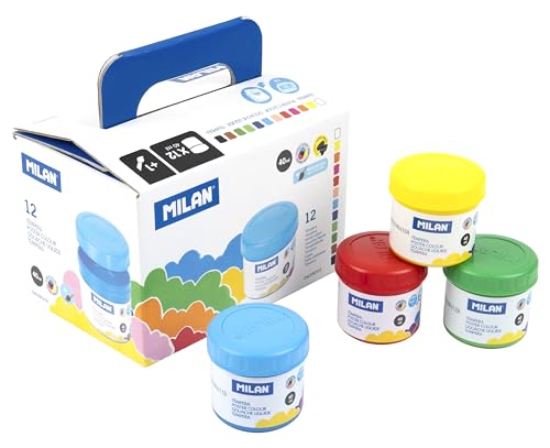 MILAN® Boîte de 12 pots de 40 ml peinture gouache couleurs assorties avec pinceau