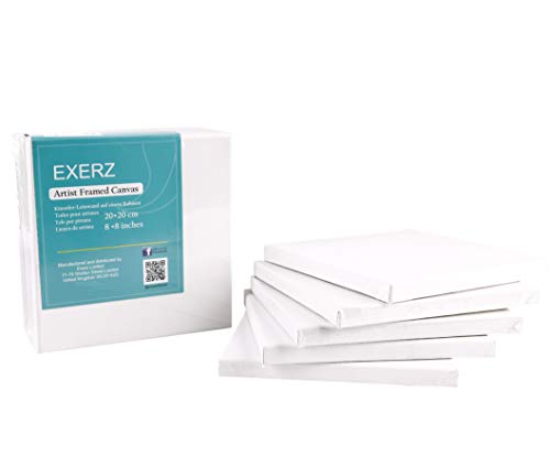 EXERZ 20x20cm Toiles pré-étirées 5 pièces - 1,7cm D'épaisseur Toiles à Peindre Encadrées/ 280GSM/ 100% Coton/Triplement Apprêtée/Sans Acide/Grain Moyen/ - Peinture à Huile/Gouache/Acrylique