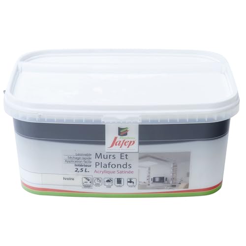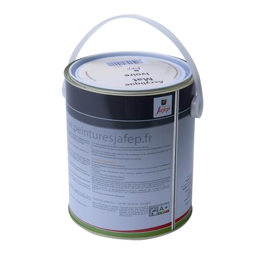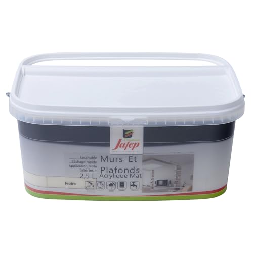 Peinture Acrylique Finition Mate 2,5L - Couleur Ivoire - Surface entre 30 et 35 m² - Multi Supports - Sèche Rapidement - Peinture Murale - Utilisation Intérieur et Extérieur - Jafep