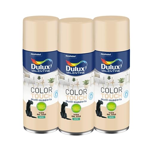 Dulux Valentine Peinture Intérieure et Extérieure Aérosol Color Touch - Satin Ivoire 400 ml - Lot de 3