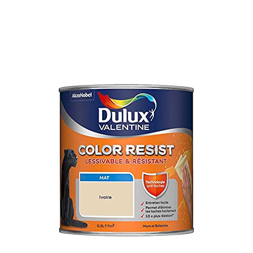 Dulux Valentine Color Resist Pièces à Vivre - Peinture Intérieure Murs, Plafonds, Boiseries - Lessivable et Résistante - Couleur : Ivoire - 0,5 L