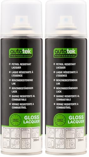Autotek Professional Laque brillante résistante à l'essence, résistante et durable professionnelle, peinture professionnelle en aérosol pour voiture - Laque résistante à l'essence, 300 ml (Lot de 2)