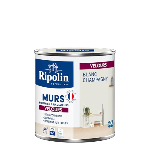 RIPOLIN - Peinture Intérieure Multi-Supports – Murs, Boiseries & Radiateurs – Ultra couvrante - Monocouche - Confort d'application - Aspect Velours - Blanc Champagny - 0,5L