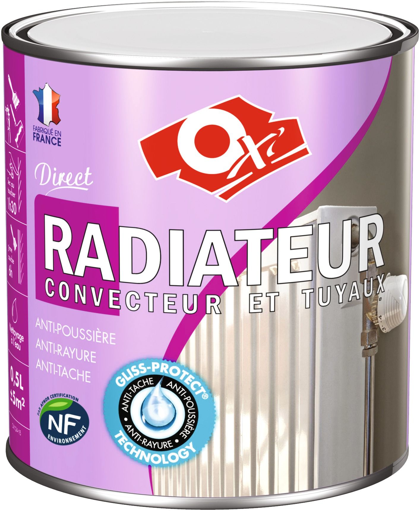 Peinture monocouche radiateur convecteur et tuyau Oxi - Blanc brillant - 0,5 l