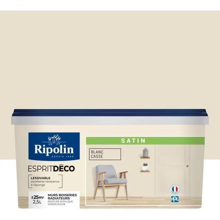 Peinture acrylique Ripolin ESPRIT DECO monocouche satin 2.5 L blanc cassé