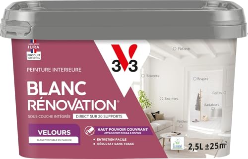 V33 Peinture blanche mur et plafond veloutée - multi-supports - monocouche - BLANC RENOVATION®, 2,5L