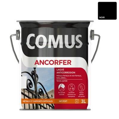 Comus ANCORFER SATIN 3L Noir - Peinture-laque antirouille pour métaux et autres supports COMUS