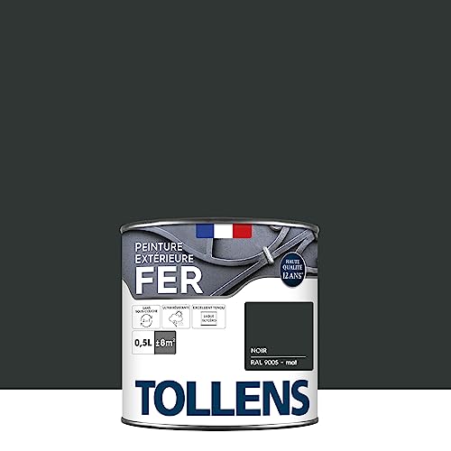 Tollens - Peinture extérieure fer 2 en 1 - Ultra Résistante - Protection antirouille - Laque Riche en Résine - Sans Sous-Couche - Entretien Facile - Brillant - Noir Mat - 0,5L = 8m2