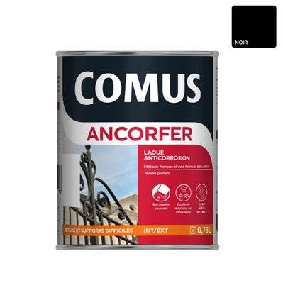 Comus ANCORFER BRILLANT 0.75L Noir - Peinture-laque antirouille pour métaux et autres supports COMUS