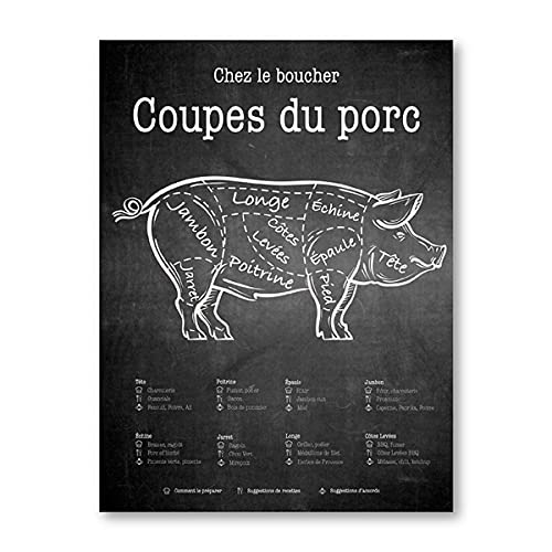 HERW Impression sur Toile Guide De Boucher Français Affiche Porc Coupé Cuisine Symbole Impression Tableau Noir Vintage Art Toile Peinture Cadeau pour Mari Petit Ami