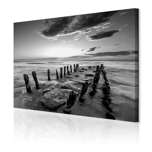 decomonkey - Impression sur Toile noir et blanc Mer 60x40 1 Pièce - Tableau Décoration Appartement Déco Salon Peinture sur Toile Vagues pierre paysage mer nature ciel paysage coucher de soleil