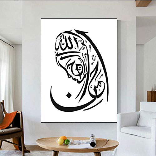 CloudShang Art Mural Islamique Calligraphie Arabe Affiche Abstraite Noir Blanc Femme Musulmane Toile Tableau Peinture Salon Decoration à la Maison D06118