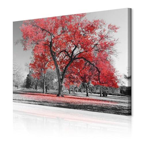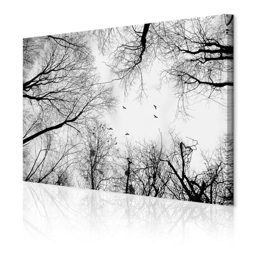 decomonkey - Impression sur Toile noir et blanc Arbre 120x80 1 Pièce - Tableau Décoration Appartement Déco Salon Peinture sur Toile Des arbres photographie automne paysage feuilles nature