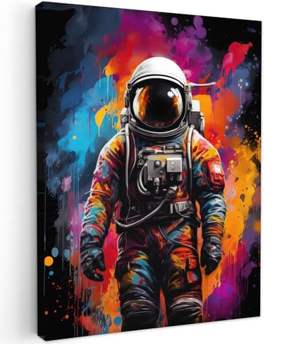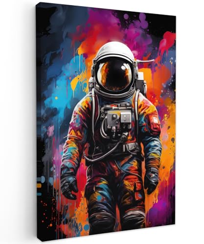 MuchoWow© Impression sur Toile Decoration Murale Peinture 50x70 cm Tableaux Decoratifs Muraux Déco Chambre Tableau Salon Astronaute - Graffiti - Noir - Couleurs