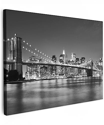 MuchoWow© Impression sur Toile Peinture 120x80 cm Tableau Mural Decoration Salon Reproductions de Tableaux Murale Moderne New York - Pont - Brooklyn - Noir et blanc - Architecture