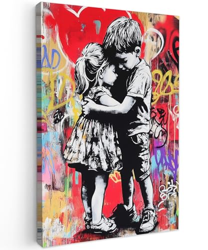 MuchoWow© Impressions sur Toile 50x70 cm Deco Tableau Murale Decoration Salon Peinture Tableaux Chambre Toiles Maison Vintage - Street art - Moto - Garçon - Graffiti - Noir - Banksy