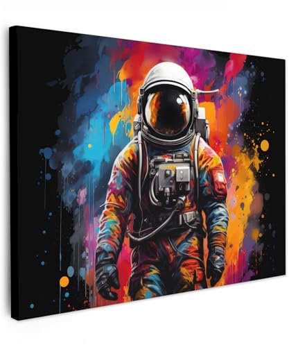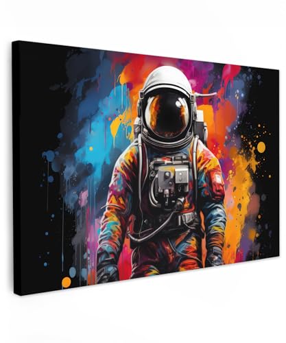 MuchoWow© Impression sur Toile Decoration Murale Peinture 70x50 cm Tableaux Decoratifs Muraux Déco Chambre Tableau Salon Astronaute - Graffiti - Noir - Couleurs