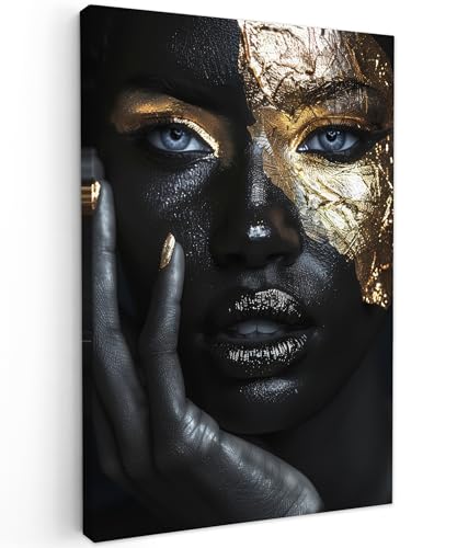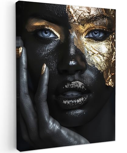 MuchoWow© Impression sur Toile Decoration Murale Peinture 60x90 cm Tableaux Decoratifs Muraux Déco Chambre Tableau Salon Femme - Or - Portrait - Noir et blanc - Luxe