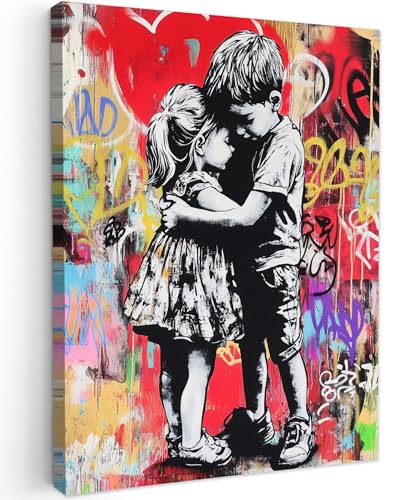 MuchoWow© Impressions sur Toile 40x60 cm Deco Tableau Murale Decoration Salon Peinture Tableaux Chambre Toiles Maison Vintage - Street art - Moto - Garçon - Graffiti - Noir - Banksy