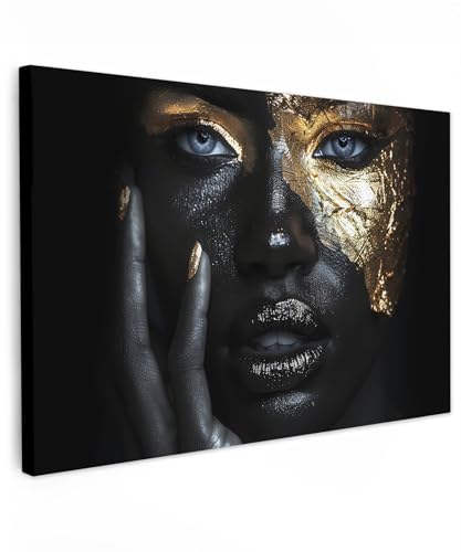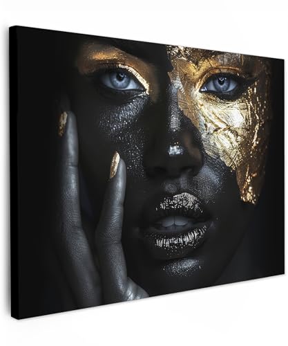 MuchoWow© Impression sur Toile Decoration Murale Peinture 90x60 cm Tableaux Decoratifs Muraux Déco Chambre Tableau Salon Femme - Or - Portrait - Noir et blanc - Luxe