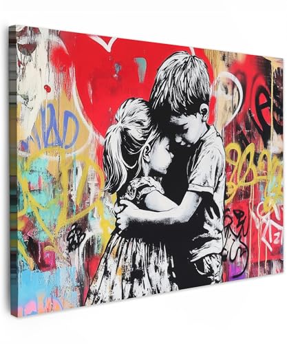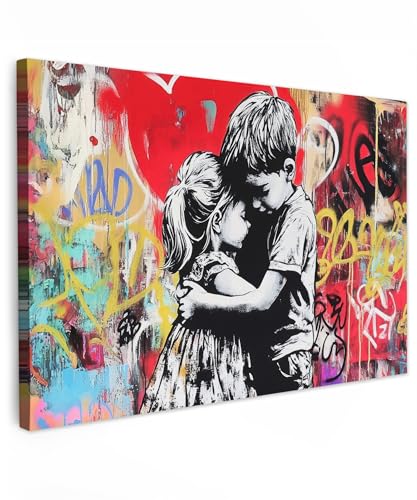 MuchoWow© Impressions sur Toile 80x60 cm Deco Tableau Murale Decoration Salon Peinture Tableaux Chambre Toiles Maison Vintage - Street art - Moto - Garçon - Graffiti - Noir - Banksy