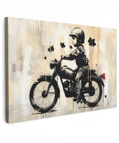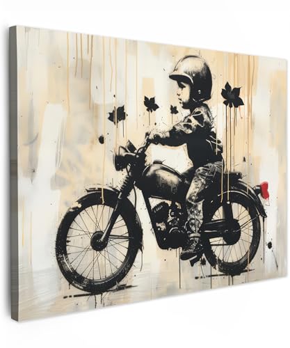 MuchoWow© Impressions sur Toile 120x80 cm Deco Tableau Murale Decoration Salon Peinture Tableaux Chambre Toiles Maison Vintage - Street art - Moto - Garçon - Graffiti - Noir - Banksy