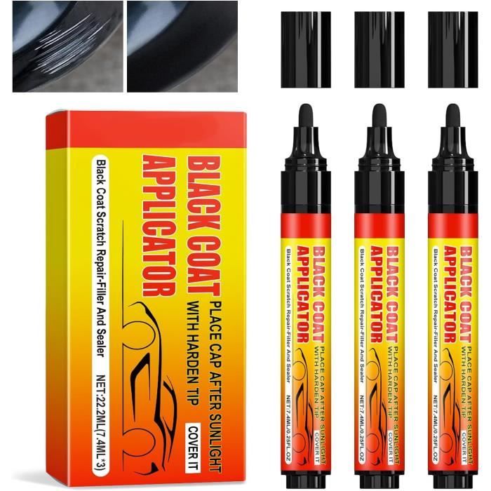 3 stylos de retouche de peinture de voiture - Noir - Pour réparation de rayures et de rayures