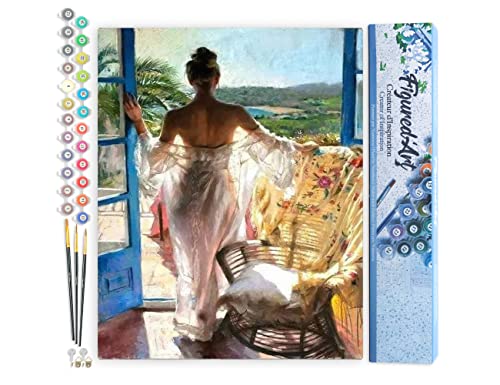 Figured'Art Peinture par Numéro Adulte Femme à sa Fenêtre - Activité Manuelle Kit de Loisir Créatif DIY Numéro d'Art Complet - 40x50cm sans châssis en bois