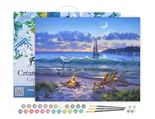 Figured'Art Peinture par Numéro Adulte avec Cadre Vue sur la plage - Activité Manuelle Kit de Loisir Créatif DIY Numéro d'Art Complet - 40x50cm toile tendue sur châssis