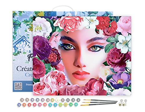 Figured'Art Peinture par Numéro Adulte avec Cadre Visage et Fleurs - Activité Manuelle Kit de Loisir Créatif DIY Numéro d'Art Complet - 40x50cm toile tendue sur châssis