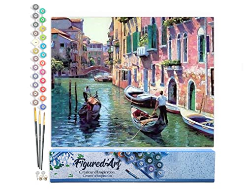 Figured'Art Peinture par Numéro Adulte Canaux de Venise - Activité Manuelle Kit de Loisir Créatif DIY Numéro d'Art Complet - 40x50cm sans châssis en bois
