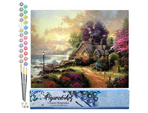 Figured'Art Peinture par Numéro Adulte avec Cadre Paysage de campagne - Activité Manuelle Kit de Loisir Créatif DIY Numéro d'Art Complet - 40x50cm toile tendue sur châssis