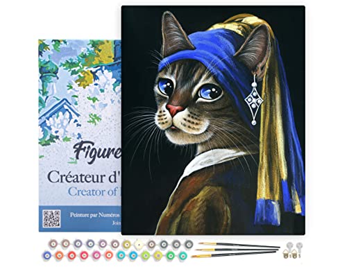Figured'Art Peinture par Numéro Adulte Chat Connaisseur - Activité Manuelle Kit de Loisir Créatif DIY Numéro d'Art Complet - 40x50cm sans châssis en bois