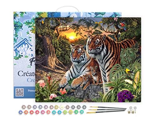 Figured'Art Peinture par Numéro Adulte avec Cadre Famille de Tigre - Activité Manuelle Kit de Loisir Créatif DIY Numéro d'Art Complet - 40x50cm toile tendue sur châssis
