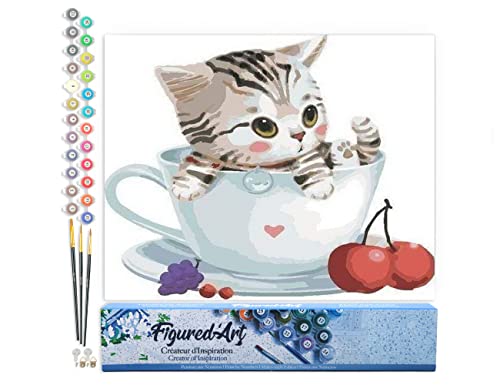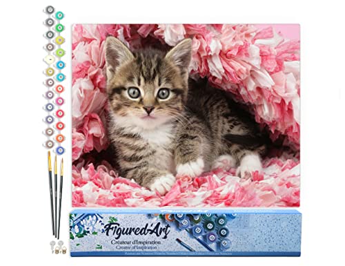 Figured'Art Peinture par Numéro Adulte Chaton enrobé - Activité Manuelle Kit de Loisir Créatif DIY Numéro d'Art Complet - 40x50cm sans châssis en bois