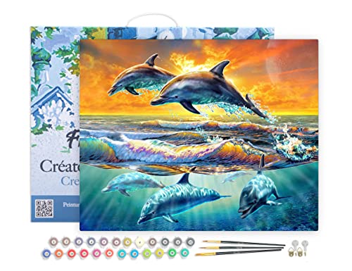 Figured'Art Peinture par Numéro Adulte avec Cadre Aube de Dauphins - Activité Manuelle Kit de Loisir Créatif DIY Numéro d'Art Complet - 40x50cm toile tendue sur châssis