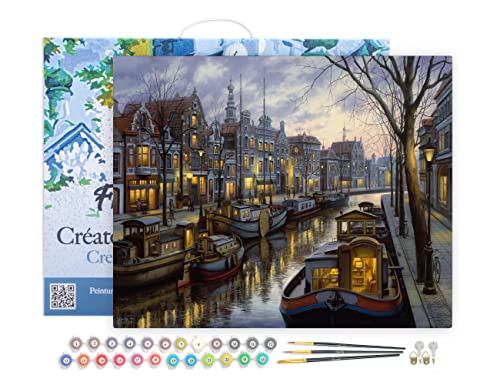 Figured'Art Peinture par Numéro Adulte avec Cadre Vie sur le canal - Activité Manuelle Kit de Loisir Créatif DIY Numéro d'Art Complet - 40x50cm toile tendue sur châssis