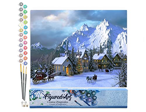 Figured'Art Peinture par Numéro Adulte Noël dans Les Alpes - Activité Manuelle Kit de Loisir Créatif DIY Numéro d'art Complet - 40x50cm sans châssis en Bois