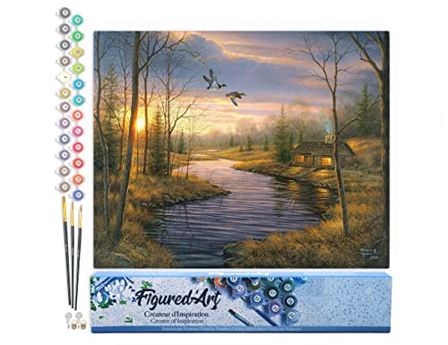 Figured'Art Peinture par Numéro Adulte Maison de campagne au crepuscule - Activité Manuelle Kit de Loisir Créatif DIY Numéro d'Art Complet - 40x50cm sans châssis en bois