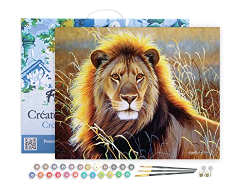 Figured'Art Peinture par Numéro Adulte avec Cadre Lion dans la savane - Activité Manuelle Kit de Loisir Créatif DIY Numéro d'Art Complet - 40x50cm toile tendue sur châssis