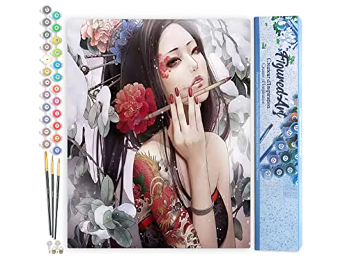 Figured'Art Peinture par Numéro Adulte Belle asiatique - Activité Manuelle Kit de Loisir Créatif DIY Numéro d'Art Complet - 40x50cm sans châssis en bois