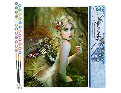 Figured'Art Peinture par Numéro Adulte Féé dorée - Activité Manuelle Kit de Loisir Créatif DIY Numéro d'Art Complet - 40x50cm sans châssis en bois