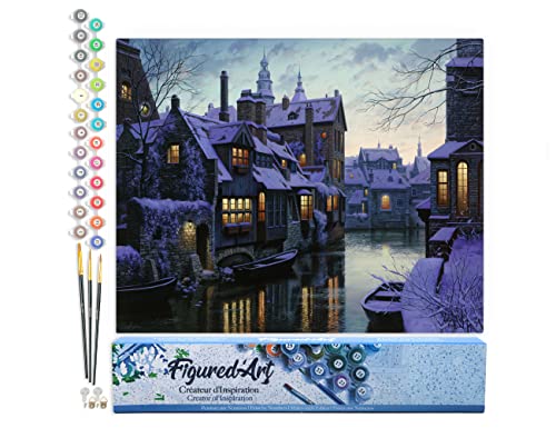 Figured'Art Peinture par Numéro Adulte Canaux au Crepuscule - Activité Manuelle Kit de Loisir Créatif DIY Numéro d'art Complet - 40x50cm sans châssis en Bois