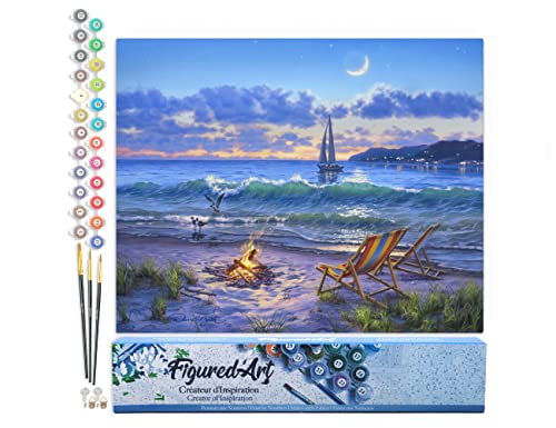 Figured'Art Peinture par Numéro Adulte Vue sur la plage - Activité Manuelle Kit de Loisir Créatif DIY Numéro d'Art Complet - 40x50cm sans châssis en bois