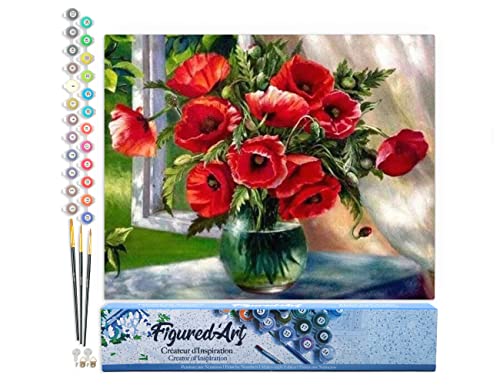 Figured'Art Peinture par Numéro Adulte Bouquet de Fleurs Rouge - Activité Manuelle Kit de Loisir Créatif DIY Numéro d'Art Complet - 40x50cm sans châssis en bois