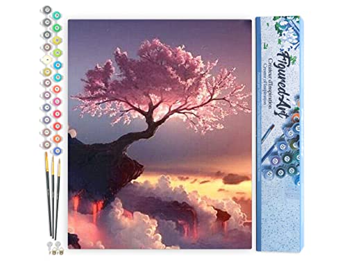 Figured'Art Peinture par Numéro Adulte Arbre rose et Nuages - Activité Manuelle Kit de Loisir Créatif DIY Numéro d'Art Complet - 40x50cm sans châssis en bois