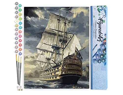 Figured'Art Peinture par Numéro Adulte Galion Océan - Activité Manuelle Kit de Loisir Créatif DIY Numéro d'art Complet - 40x50cm sans châssis en Bois